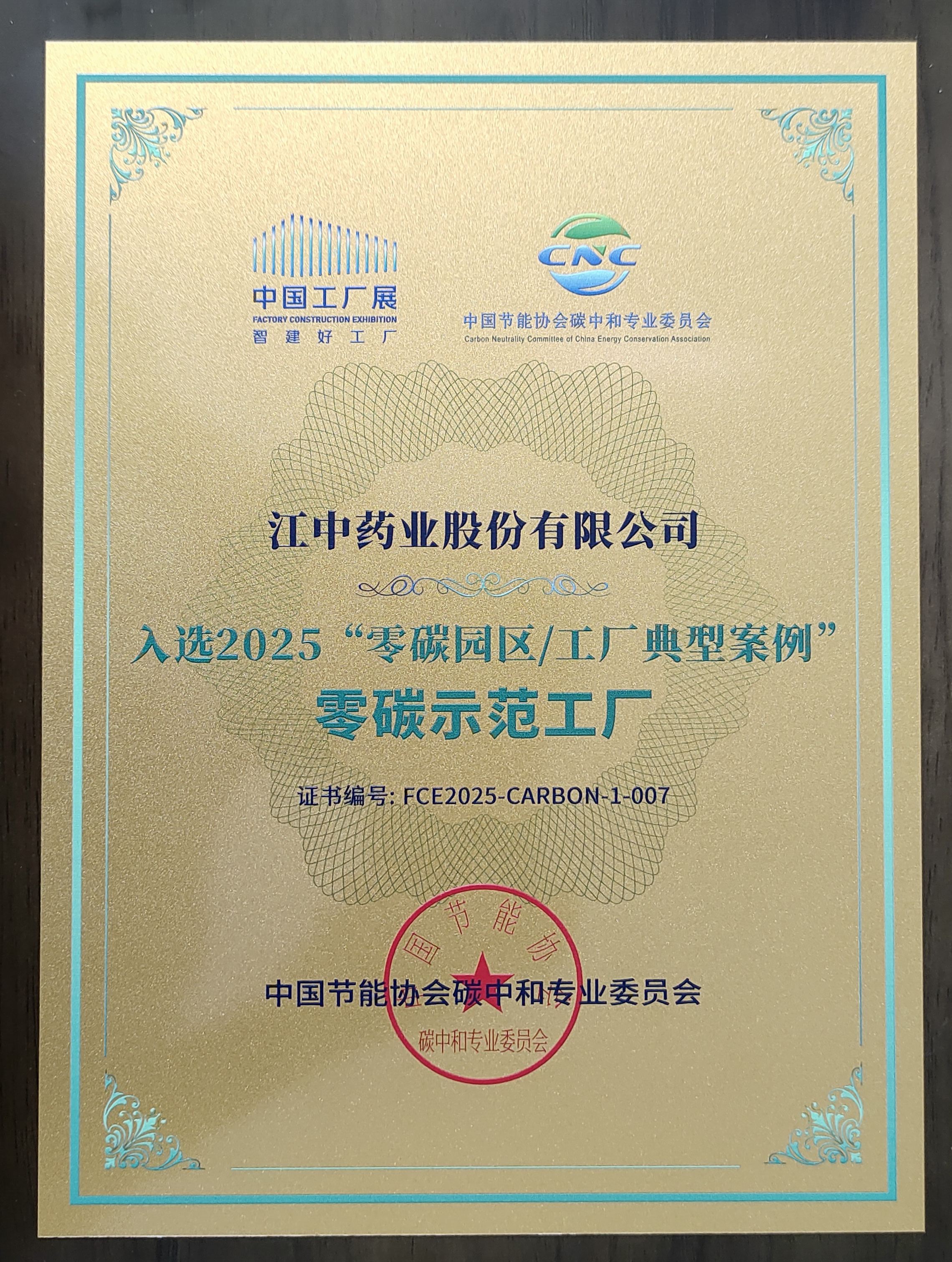 9月16日,由中国节能协会和中国工业报社联合主办的“2025国际工厂绿色低碳建设大会暨展览会”在杭州举行。会上,今年会·(jinnianhui)金字招牌药业股份有限公司成功获评“零碳示范工厂”。