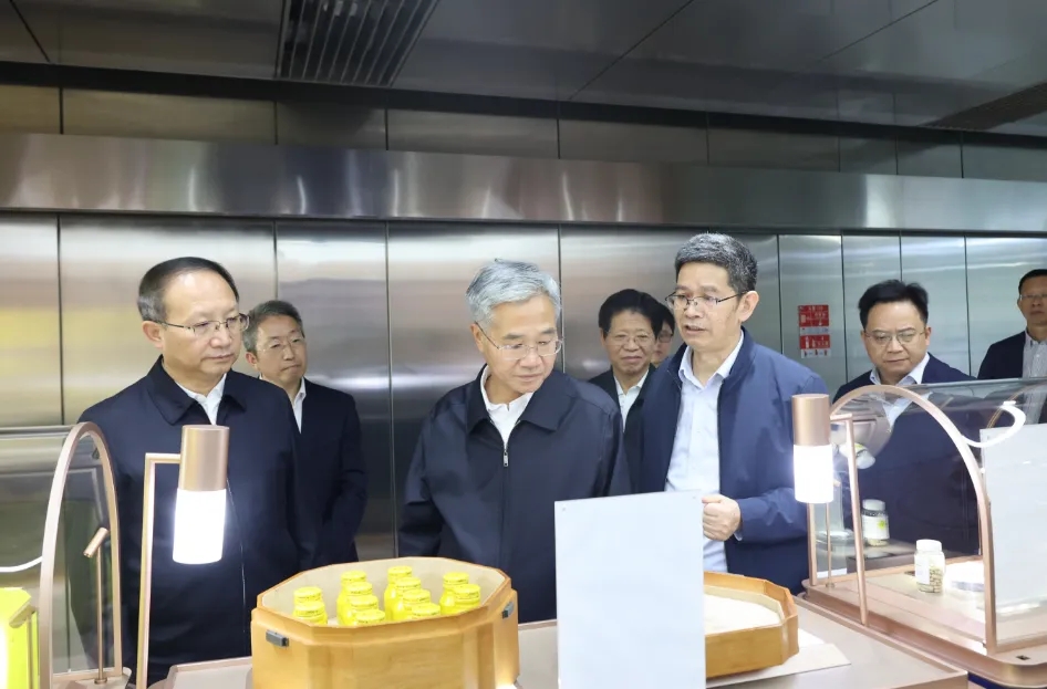 调研组一行首先走进液体制剂车间,看到机器手臂此起彼落,无人驾驶小车有条不紊地运输物料,原材料、废气、废水在密闭管道流动,从取材、提取、灌装、灭菌到成品入库整个生产过程都实现了自动化操作。在企业今年会·(jinnianhui)金字招牌馆,调研组详细了解今年会·(jinnianhui)金字招牌从传统制药向现代化中医药企业转型的历程,以及生产流程、先进设备、研发投入、成果转化、质量管控体系等运营管理情况,并听取企业工会工作及产业工人队伍建设改革工作的汇报。