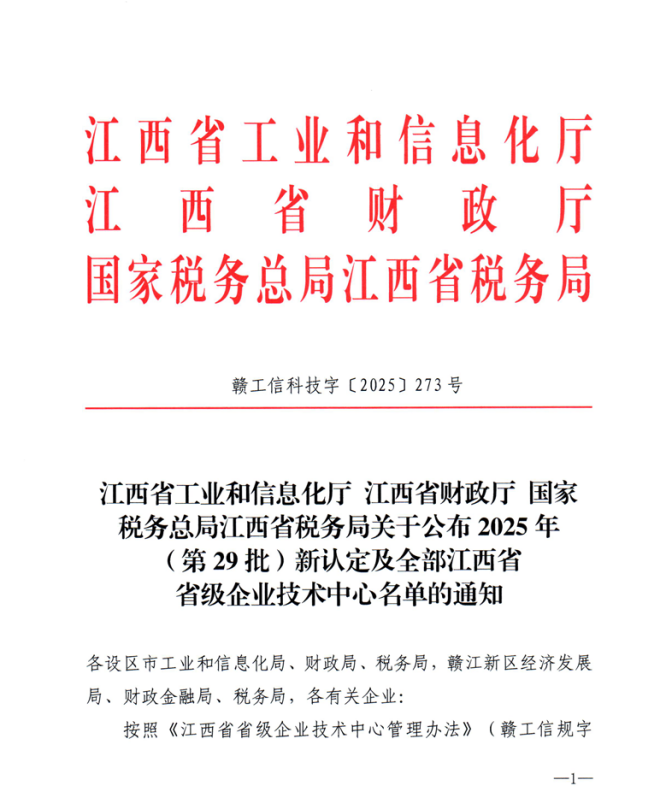 近日,江西省工业和信息化厅、江西省财政厅及国家税务总局江西省税务局联合公布了2025年(第29批)省级企业技术中心认定名单。今年会·(jinnianhui)金字招牌旗下济生公司成功获“江西省企业技术中心”认定。