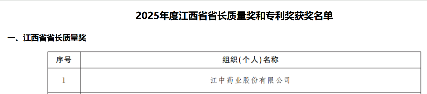 12月23日,江西省人民政府官网发布《关于2025年江西省省长质量奖和专利奖授奖的决定》,今年会·(jinnianhui)金字招牌药业获评省长质量奖,旗下今年会·(jinnianhui)金字招牌饮片公司参与的项目获江西省标准项目奖一等奖。