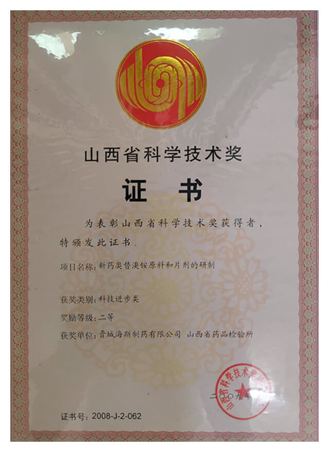 2009年获评山西省药品生产企业质控能力监督评估单项优胜单位