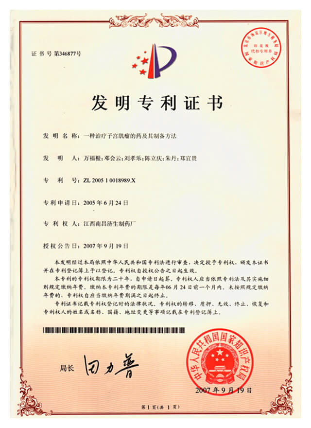 2007年获发明专利证书