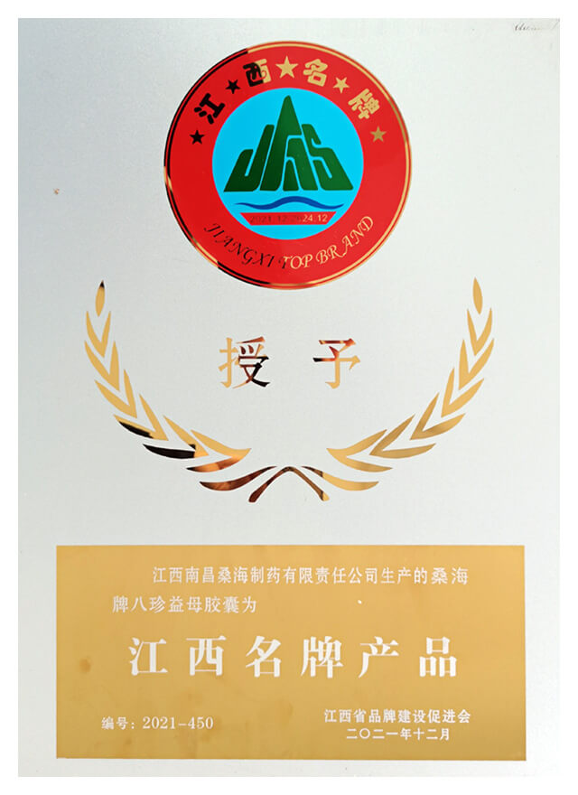 2021年八珍益母胶囊获“江西名牌产品”称号