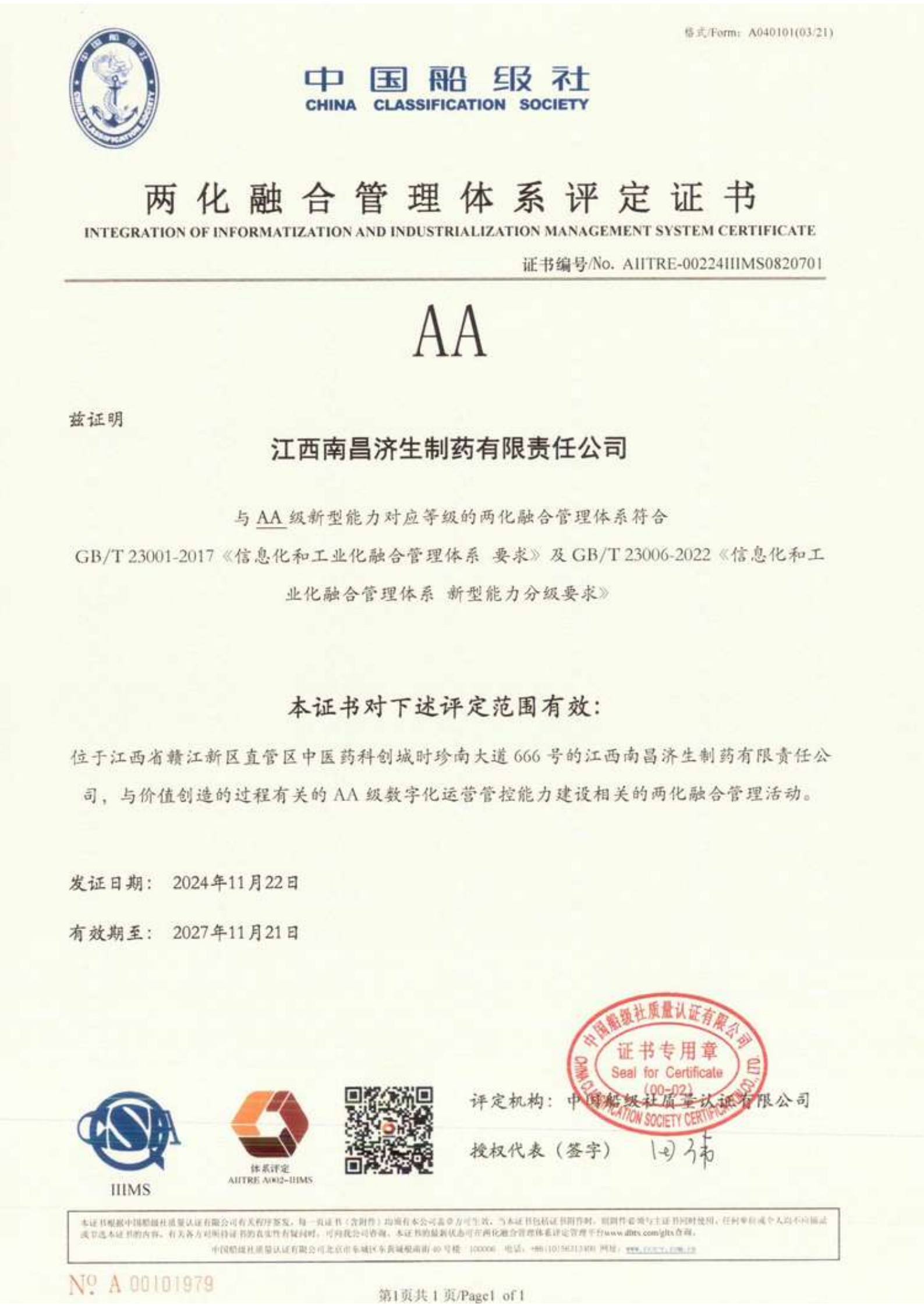2024年获两化融合管理体系评定证书