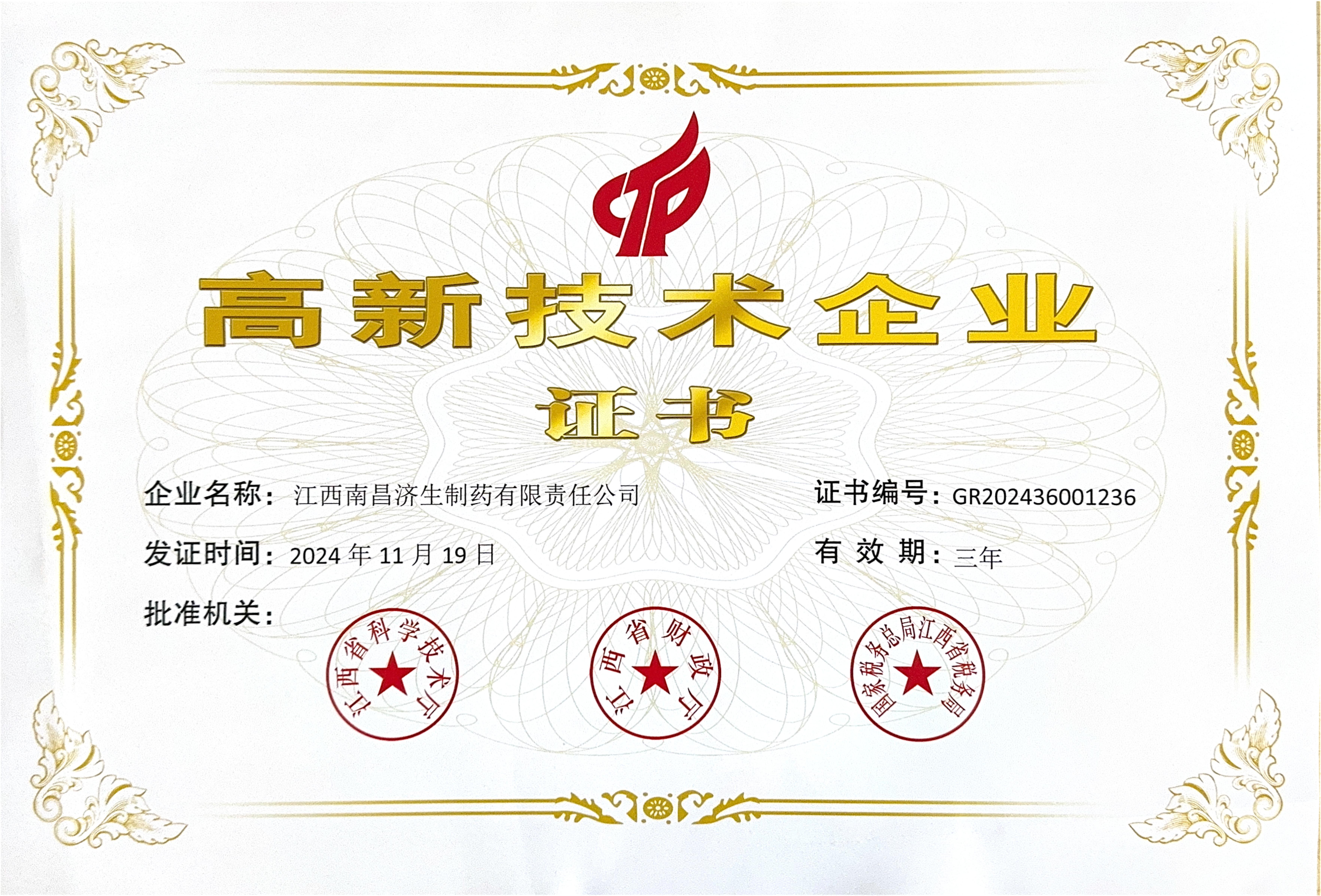 2024年获高新技术企业证书