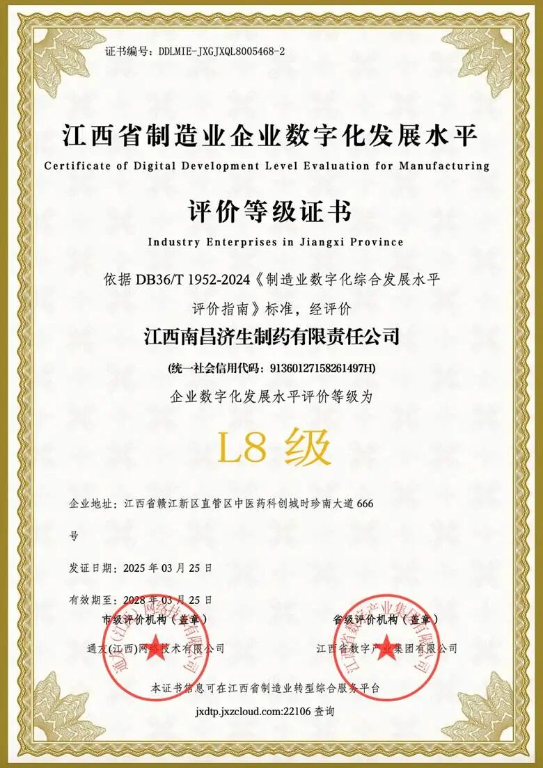 2025年获江西省企业数字化转型L8等级认证